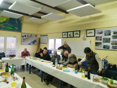 Si la matinée d’entrainement au lancer, a été grandement perturbée par la pluie, le repas lui s’est déroulé dans une excellente ambiance et à l’abri !!