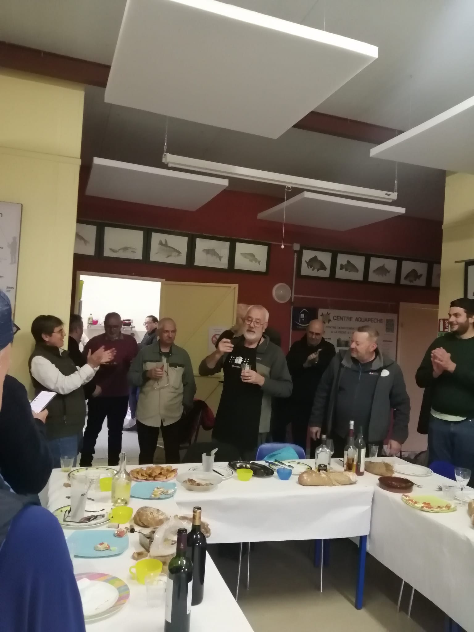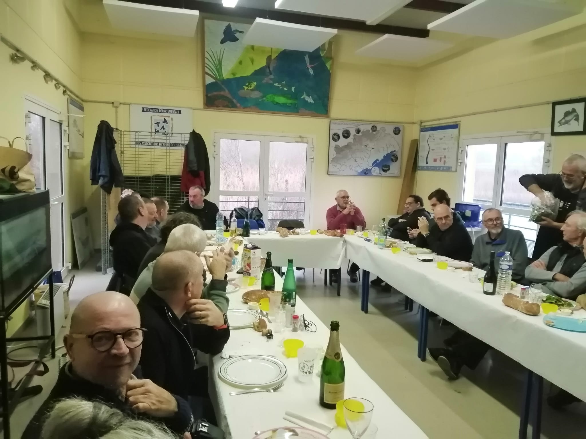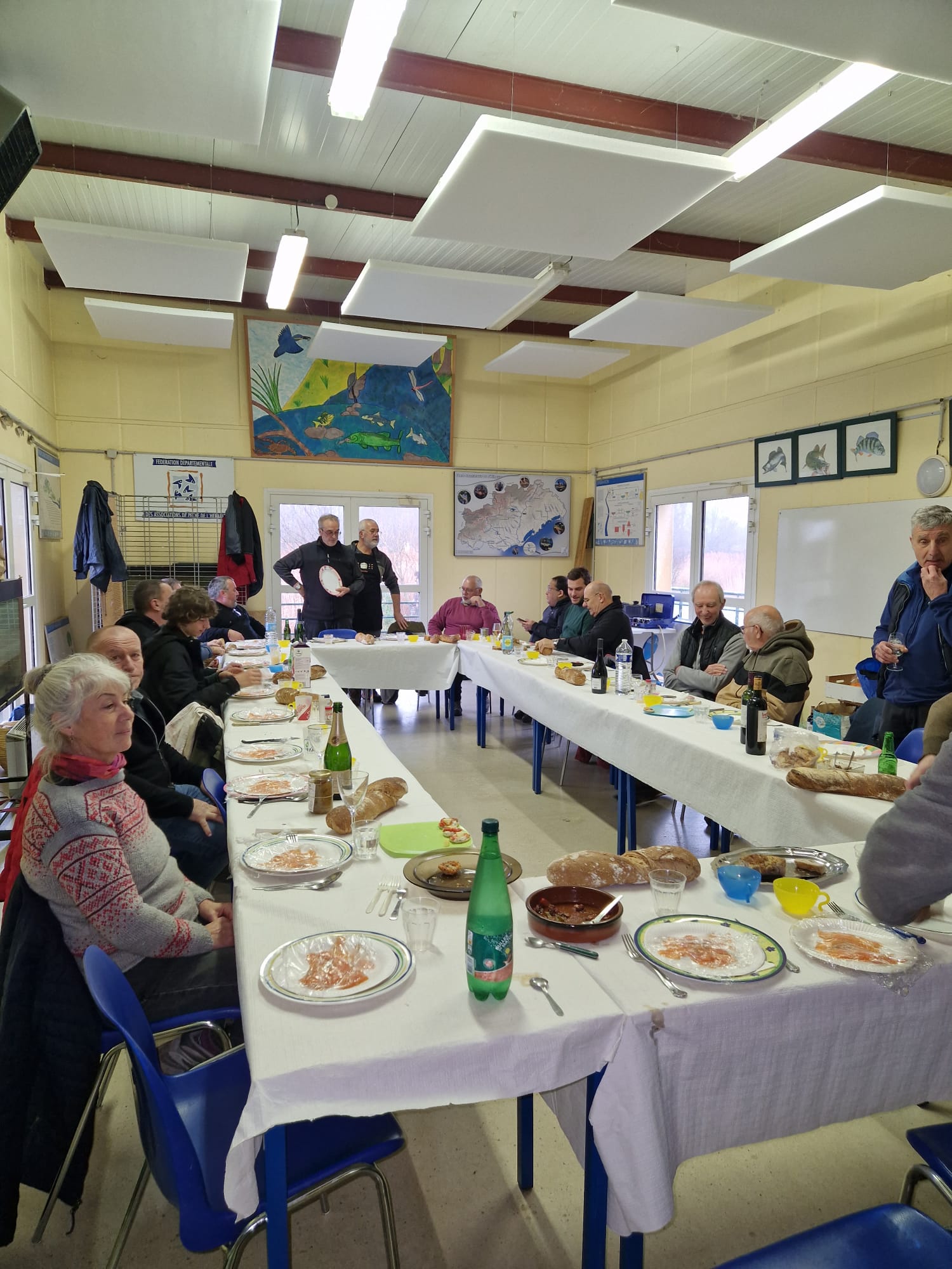 Si la matinée d’entrainement au lancer, a été grandement perturbée par la pluie, le repas lui s’est déroulé dans une excellente ambiance et à l’abri !!