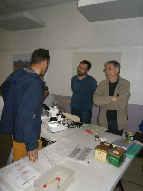 Sur le parvis du palais des sports les enfants (et adultes) ont pu voir de (très) près, sous la loupe binoculaire, quelques uns des insectes aquatiques qui peuplent nos cours d’eau. Juste à côté, sur l’atelier ‘montage de mouche’, ils ont pu voir comment les pêcheurs à la mouche tentaient d’imiter ces insectes.